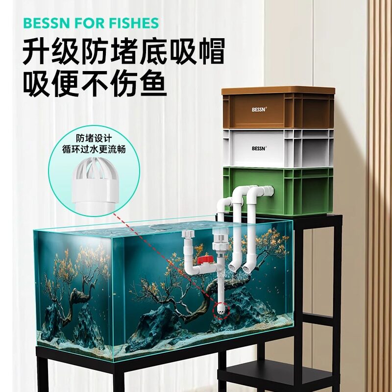天猫BESSN内置水泵周转箱过滤箱鱼缸鱼池过滤器水循环系统滴流过滤盒