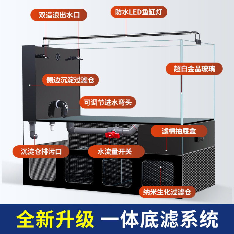 天猫生态底滤溪流鱼缸桌面缸底滤一体免换水家用金晶超白造景制氧一体