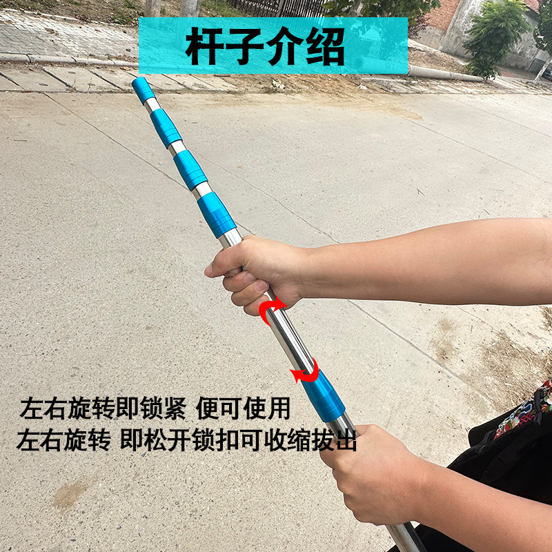 淘宝加厚不锈钢抄网杆裸竿超硬钓鱼抄鱼捞鱼网抄可伸缩抄网杆鱼叉杆