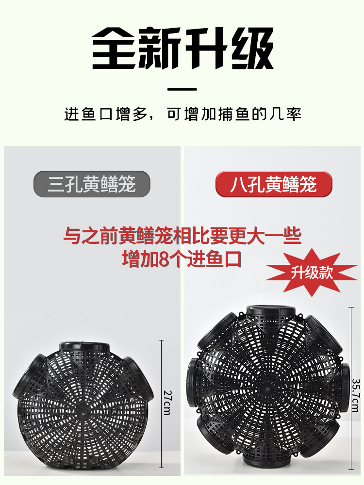黄鳝笼子是一种高效环保的捕鱼工具,专为捕捉黄鳝、泥鳅、虾类等底栖水生动物设计。采用高强度PE网布或不锈钢框架结构,耐腐蚀、寿命长,笼体设有多个单向入口,利用鱼类趋食性自然进笼却无法逃脱。适用于稻田、池塘、溪流等水域,操作简便,可夜间放置、清晨收笼,对生态环境影响小。笼体轻便易携带,部分款式可折叠,便于收纳。配合诱饵使用,捕获率高,是渔民和休闲垂钓者的实用“捉鱼神器”。同时兼具装鱼篓功能,收笼即暂养,保持渔获鲜活,广泛应用于家庭捕捞与小型养殖作业。