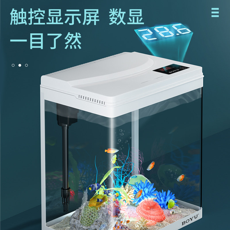 博宇高清玻璃缸中小型鱼缸是一款集过滤、制氧、智能控制于一体的桌面生态造景产品,专为客厅、书房等家居空间打造。采用高透光超白玻璃,质感通透,搭配简约现代设计,尽显雅致格调。内置高效静音过滤系统,有效净化水质,配合智能增氧装置,保障鱼类健康生长。支持手机APP远程调控灯光、水温及循环模式,实现智能化管理。缸体可搭配沉木、水草等自然造景元素,营造仿生态水下景观,既美观又具观赏性。小巧不占地,适合养金鱼、灯鱼等小型观赏鱼,是都市人群打造微型自然生态的理想选择。