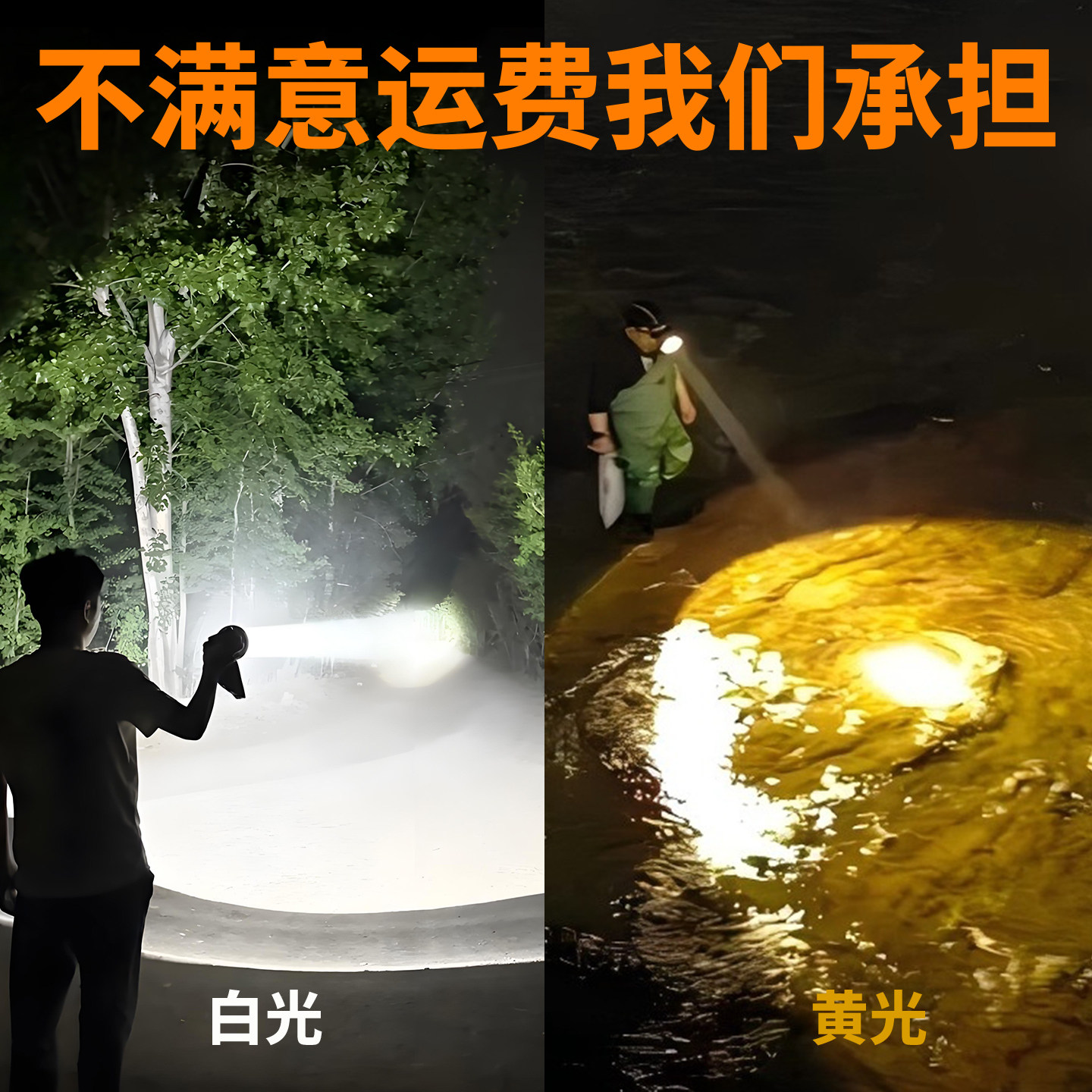 黄光头灯新款大容量锂电池头戴式赶海夜钓钓鱼专用强光超亮长续航