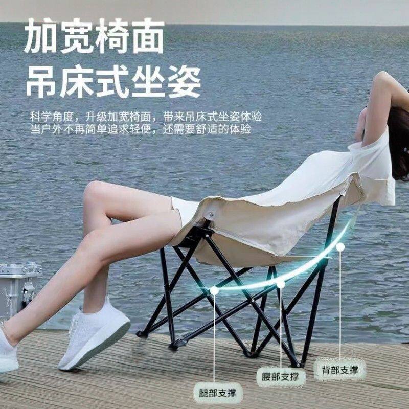 户外露营折叠月亮椅便携式折叠椅子野餐露营钓鱼凳可躺可坐沙滩椅