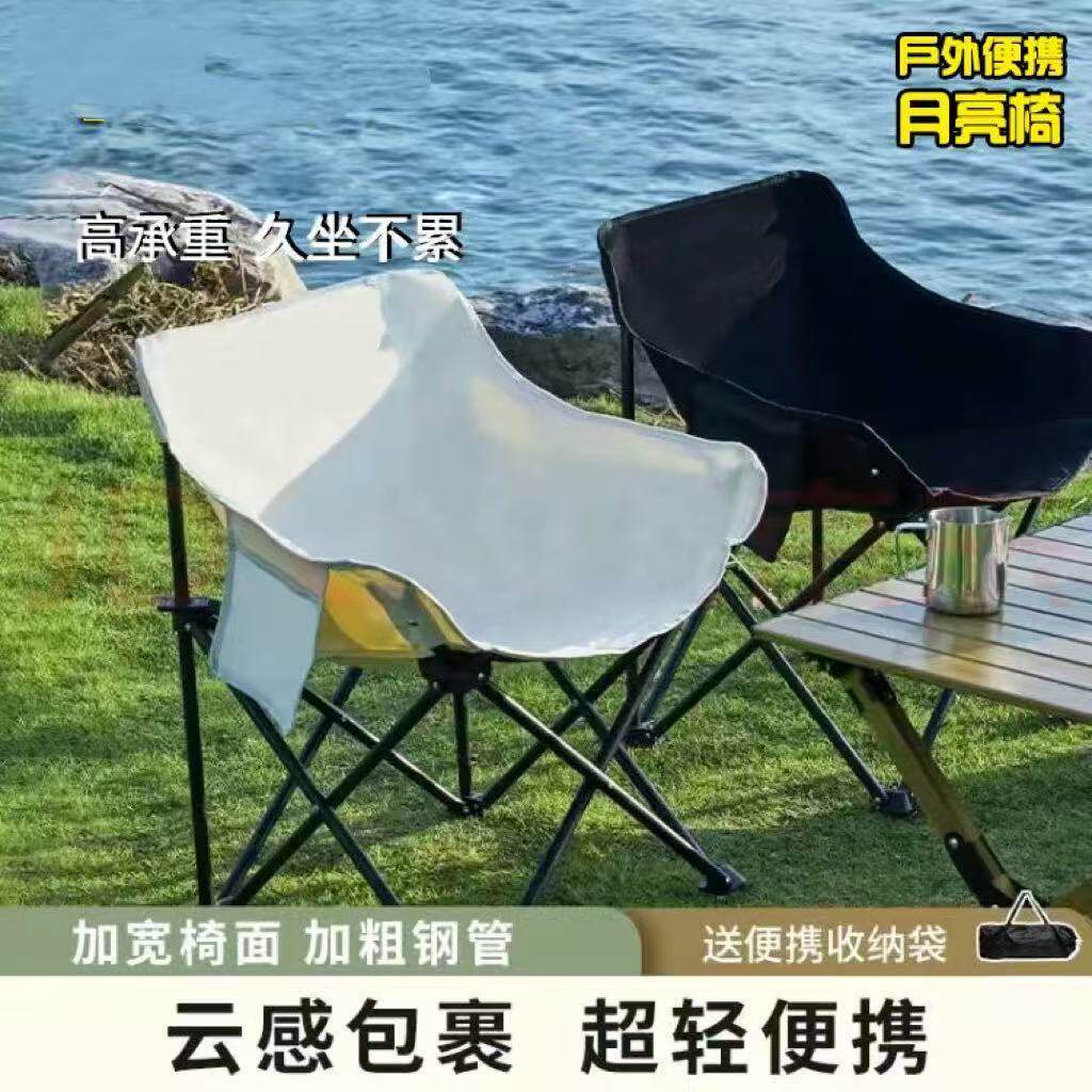 淘户外折叠椅加高月亮椅露营椅子便携板凳钓鱼沙滩躺椅野餐克米特椅