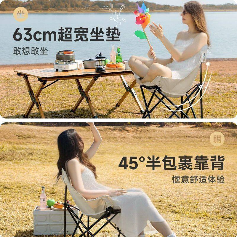 淘户外露营折叠月亮椅便携式折叠椅子野餐露营钓鱼凳可躺可坐沙滩椅