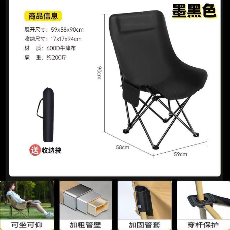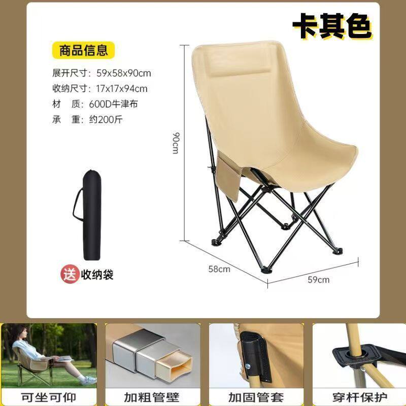 淘户外折叠椅加高月亮椅露营椅子便携板凳钓鱼沙滩躺椅野餐克米特椅