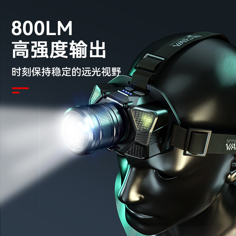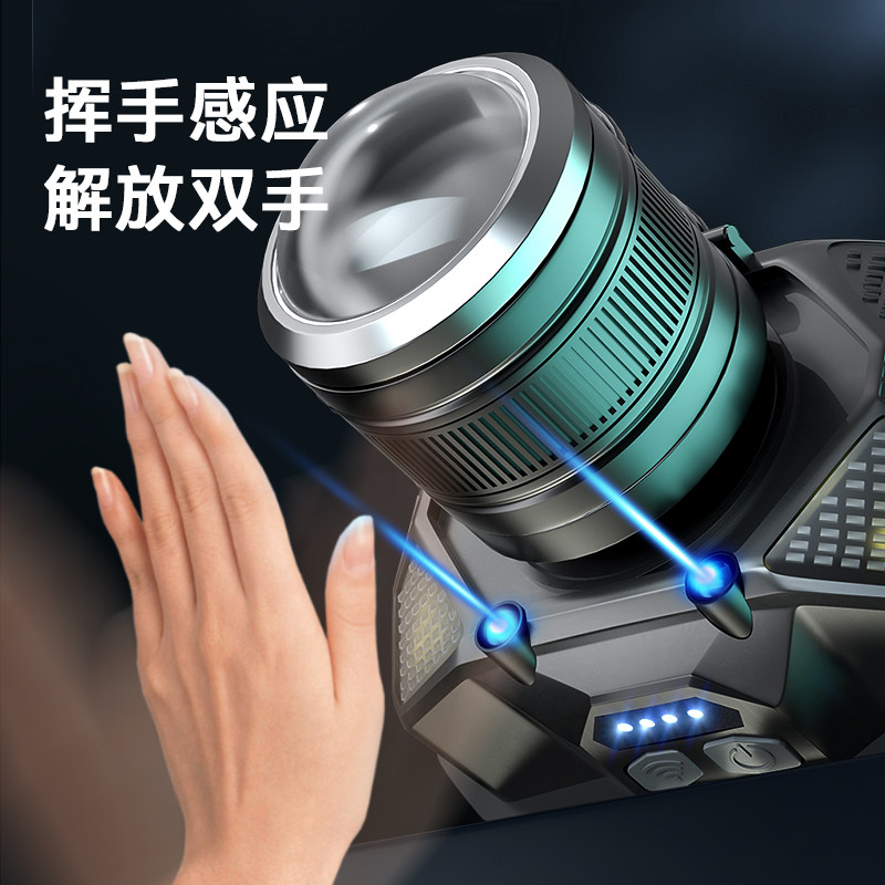 天感应头灯强光充电夜钓远射LED头戴式电筒超亮钓鱼防水3000米蝎子