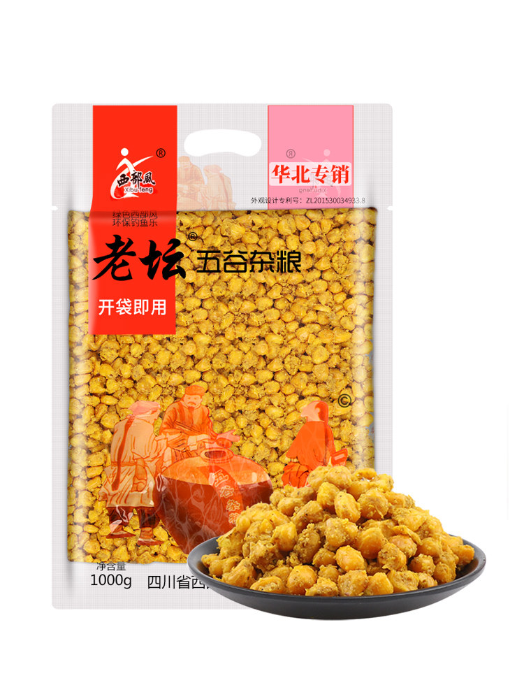 天猫梦达西部老坛五谷杂粮玉米麦粒风适用野钓鲤鱼饵料水库钓鱼打窝料