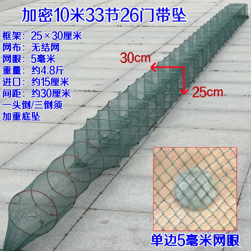 大框虾笼捕虾网是一款专为捕捞河虾、龙虾、泥鳅、鳝鱼等水生生物设计的实用渔具。采用加密加厚尼龙网片,结构牢固耐用,抗撕裂性强,有效防止猎物逃脱。笼体采用大框设计,入口科学合理,诱鱼效果好,进得来出不去。整体轻便易携带,可折叠收纳,适合河流、池塘、稻田等多种水域使用。网眼大小适中,兼顾捕捞效率与生态保护。搭配诱饵袋设计,提升诱捕成功率。无论是家庭休闲垂钓还是小规模捕捞作业,这款多功能鱼网笼都能高效稳定地完成捕虾、捕鳝任务,是渔具爱好者和水产养殖户的理想选择。