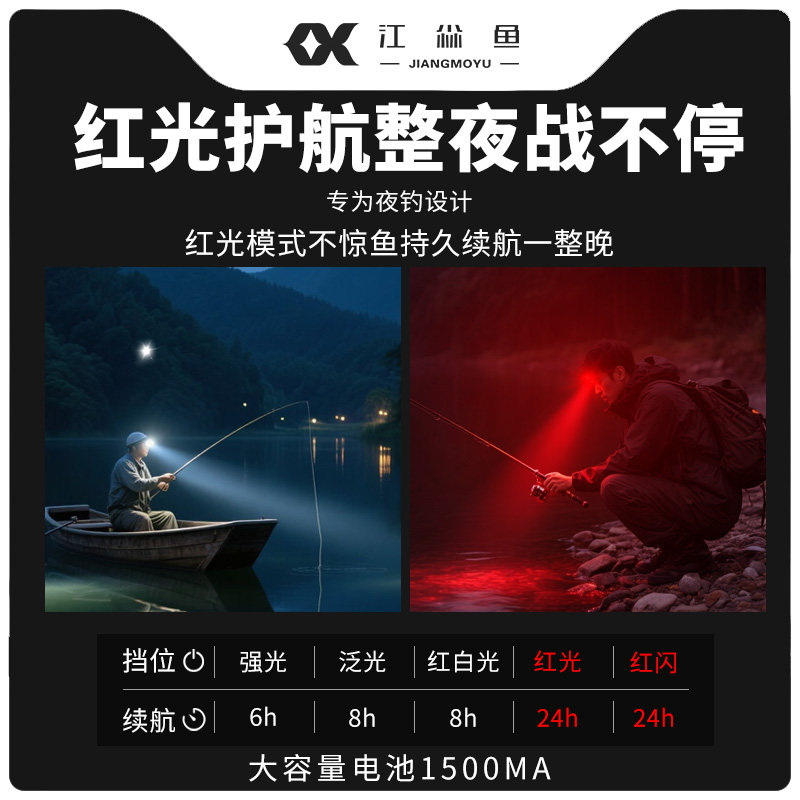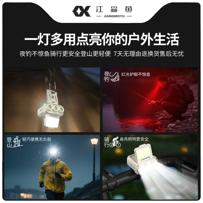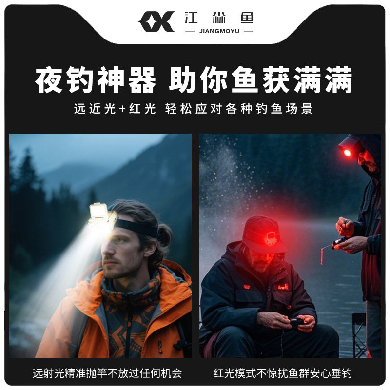 2026新款头灯钓鱼专用锂电池强光超亮帽夹灯,专为户外夜间垂钓设计,采用高容量锂电池,续航持久,支持USB快充。搭载进口LED灯珠,亮度高达1200流明,照射距离远、光线均匀,夜间视物清晰。具备感应调光功能,挥手即可开关或调节亮度,操作便捷。头戴与帽夹双模式设计,佩戴稳固舒适,解放双手。IPX6级防水,适应雨雾潮湿环境。轻量化机身,长时间使用无负担。无论是夜钓、露营、徒步还是维修作业,这款强光照明灯都是您可靠的户外伙伴,照亮黑夜,安全无忧。