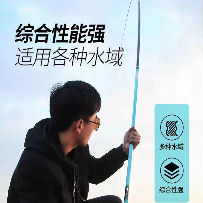 淘冰蓝粉钓鱼竿手竿超轻超硬19调鱼杆碳素台钓竿手杆大物竿渔具套装