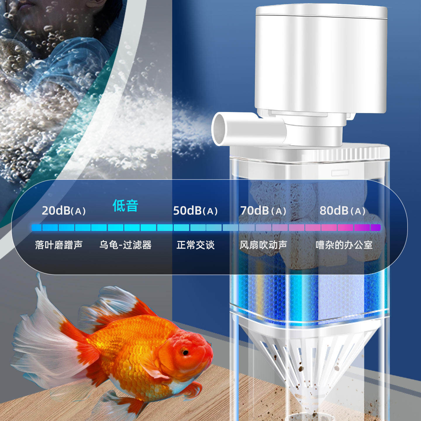 淘水妖精过滤器鱼缸过滤制氧一体机氧气泵静音水循环三合一气动吸便