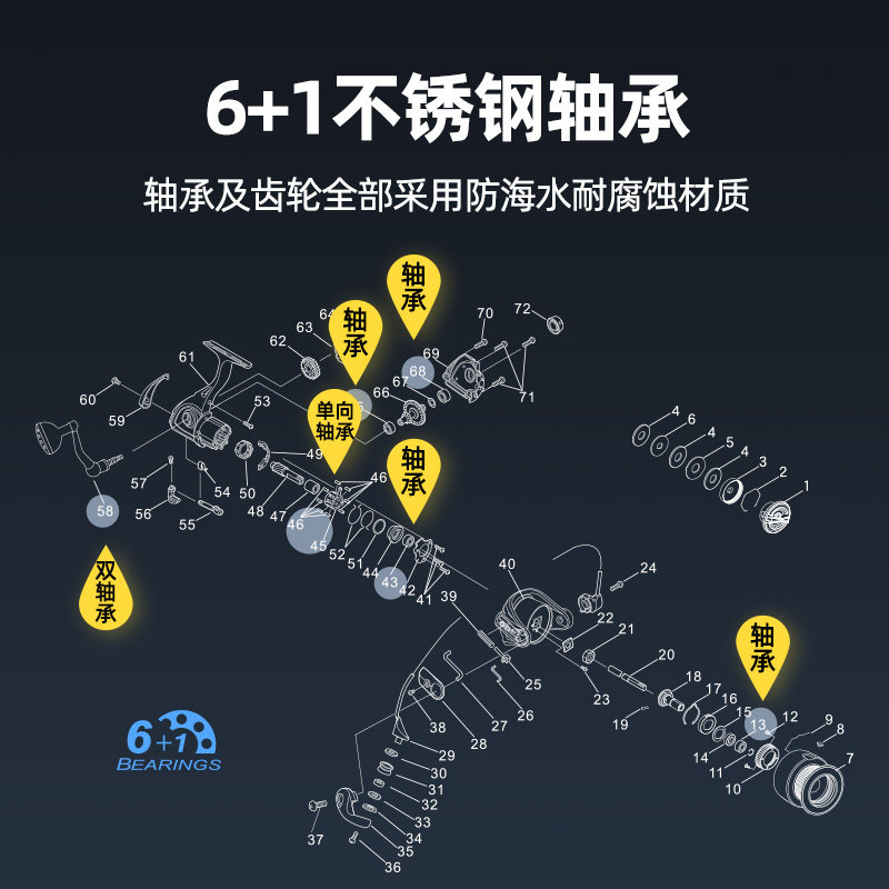 电镀头渔轮路亚轮海竿轮金属机芯纺车鱼线轮渔轮矶钓竿轮渔具配件