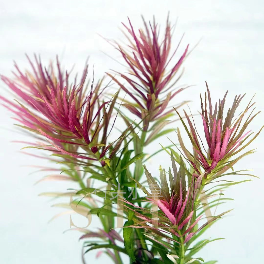 紫三角水草(学名:Hygrophila polysperma 'Purple Triangle'),又称迷你紫三角,是ADA(Aqua Design Amano)推出的稀有紫色系中后景水草。其叶片呈深紫至酒红色,在充足光照与适量二氧化碳条件下,色彩尤为浓郁,叶形小巧紧凑,株型低矮,适合作为中景或后景点缀。该品种通过自养水下叶繁殖,适应力强,生长迅速,对水质要求不高,适合新手与进阶玩家。因其独特的紫色调在水草造景中极具视觉冲击力,成为热门稀有品种,常用于营造梦幻、深邃的水下景观,是打造高端水草缸的优选之一。