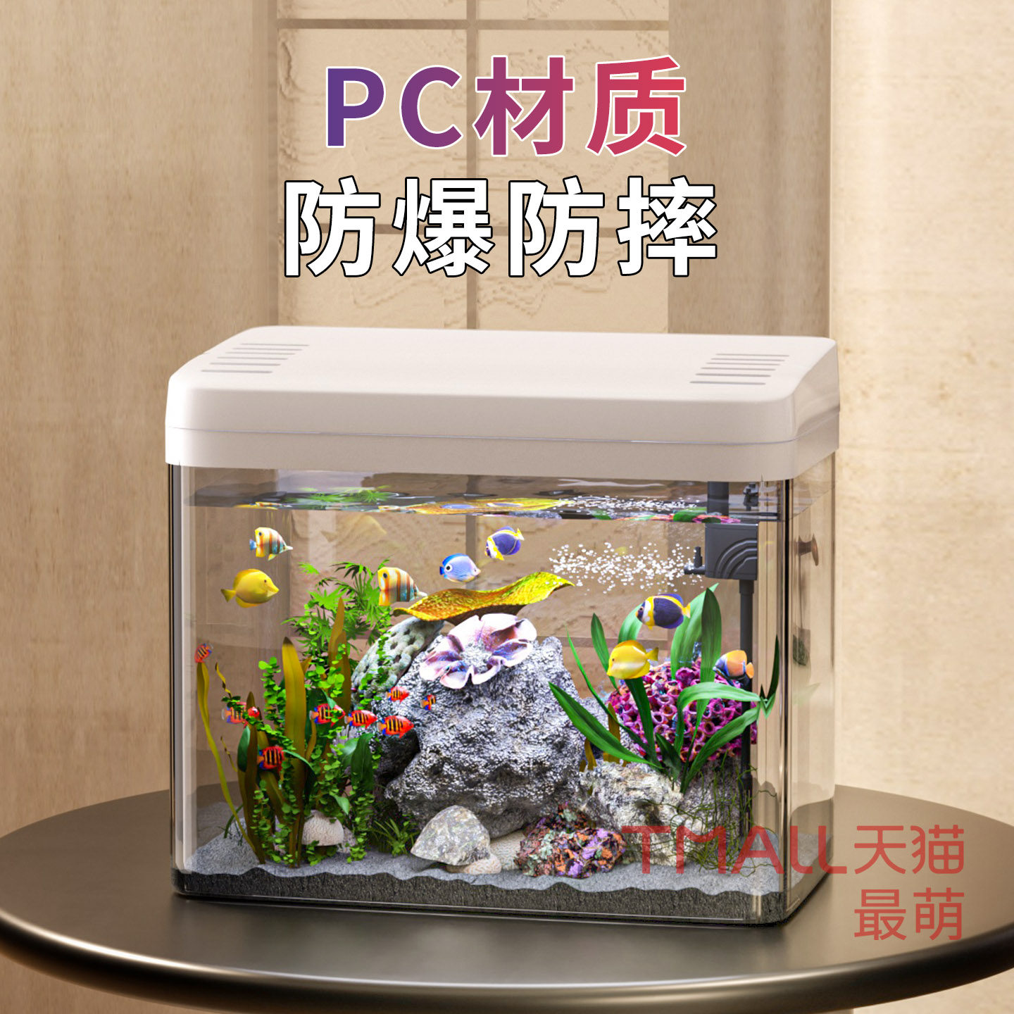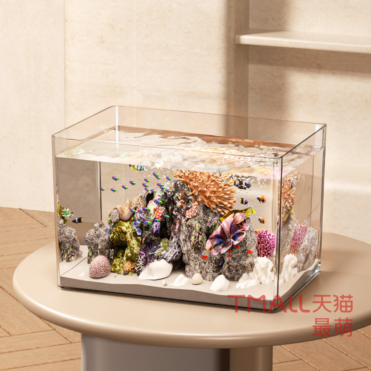 淘【蓝甸】新款专业背滤海水缸超白玻璃桌面缸小海缸小丑鱼缸水族箱
