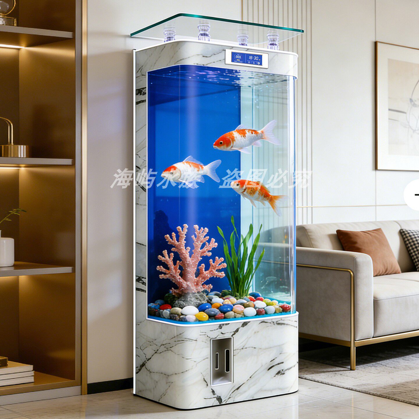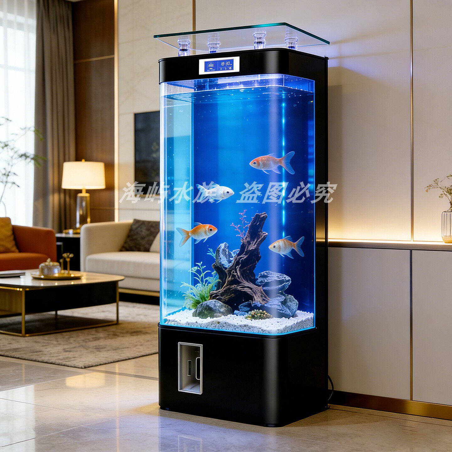 2026年新款客厅家用一体成形小型落地立式鱼缸,采用高强度亚克力材质,整体无缝设计,美观大方且安全耐用。创新自循环过滤系统实现水体自动净化,有效分解杂质、保持水质清澈,真正实现免换水、低维护。内置静音水泵与智能LED照明,营造自然生态光效,支持多模式调节,适配不同观赏需求。紧凑立式设计节省空间,适合现代家居、办公室等场景。搭配生态造景与恒温系统,为鱼类提供健康栖息环境。集观赏性、实用性与科技感于一体,是追求品质生活家庭的理想之选,让养鱼变得轻松又赏心悦目。