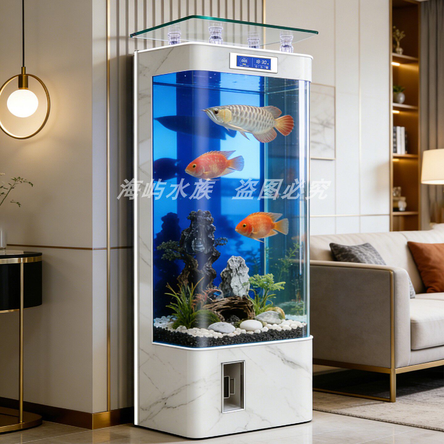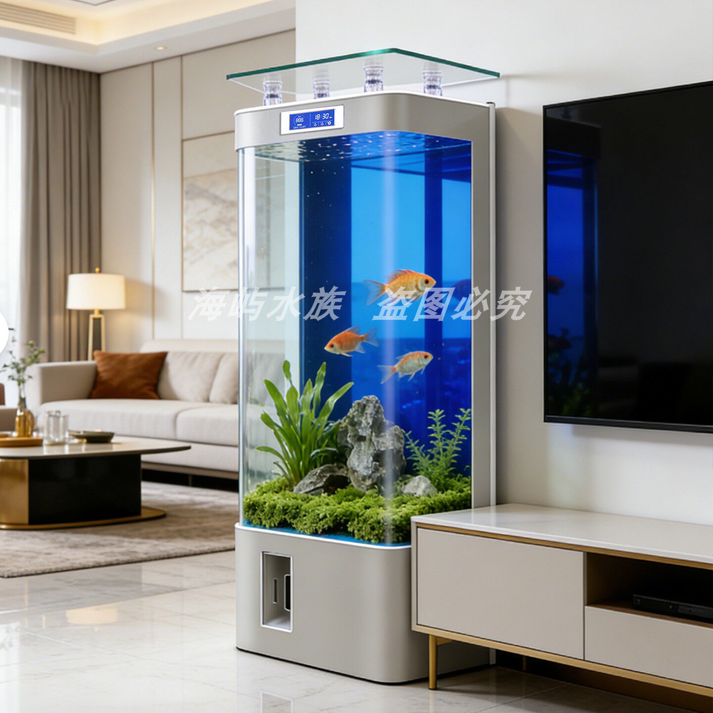 淘子弹头玻璃超白鱼缸隔断屏风款落地上下底过滤循环水族箱2026新款