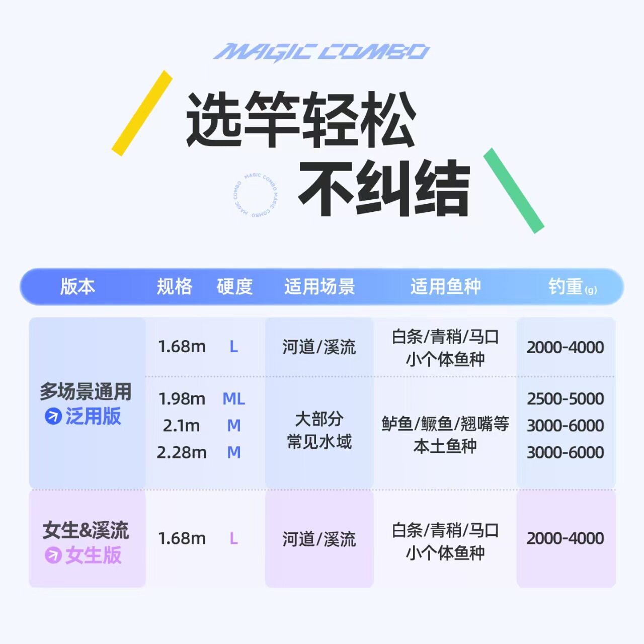 汉鼎路亚套装小白竿2代及三代是专为路亚新手和微物垂钓爱好者设计的高性价比鱼竿。采用高碳素材打造,轻盈坚韧,灵敏度高,有效传递鱼讯。2代主打入门级体验,调性适中,适合多种小型鱼种作钓;三代在2代基础上升级竿体工艺与导环配置,提升抛投顺滑度与耐用性。全套配备涵盖不同长度与调性,适配溪流、湖泊等多种场景,搭配汉鼎专用渔轮更显专业。无论是新手入门还是进阶练习,小白竿系列都以亲民价格提供可靠性能,是微物路亚的理想选择。