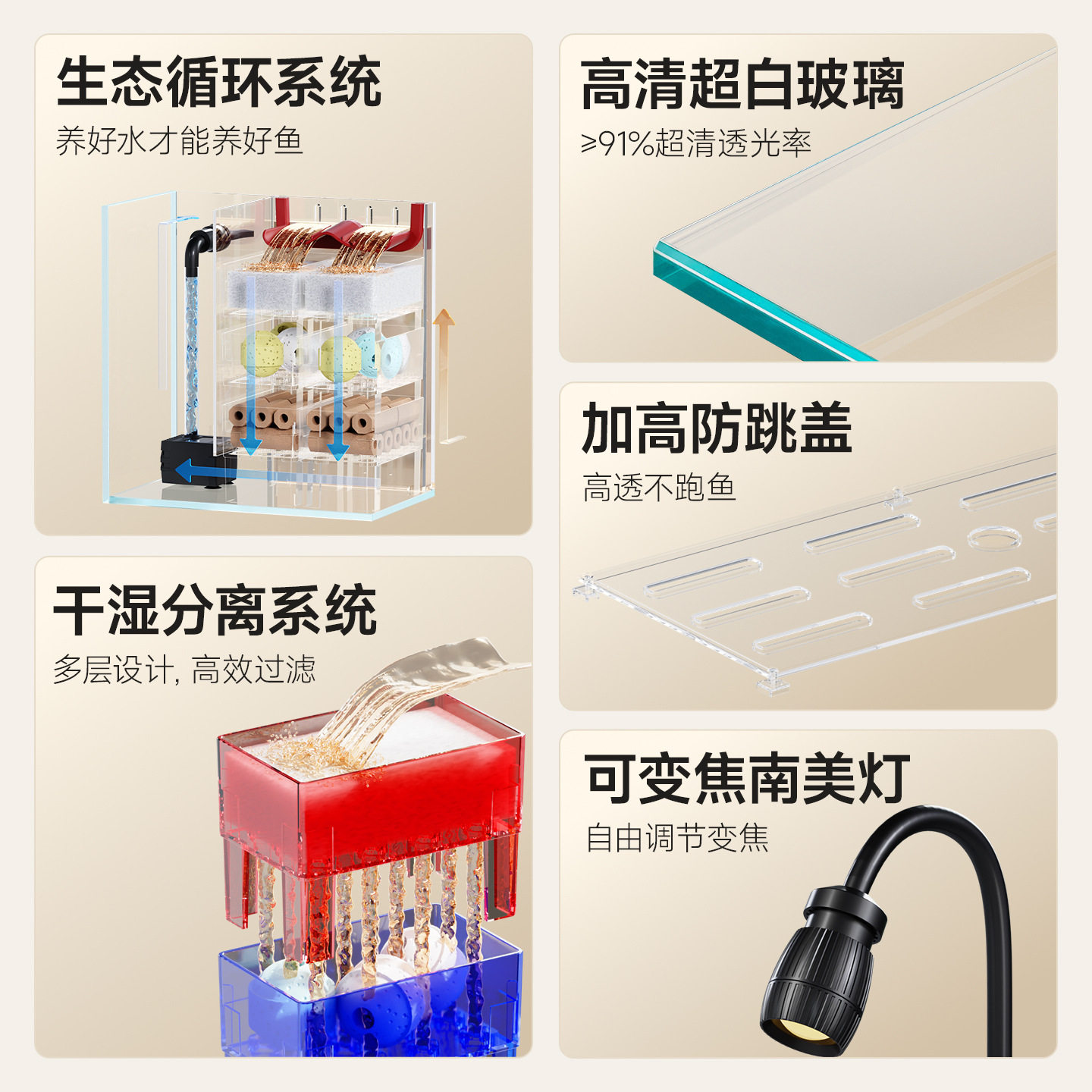 超白玻璃鱼缸小型客厅2026新款过滤制氧一体机桌面金鱼缸龟鱼混养