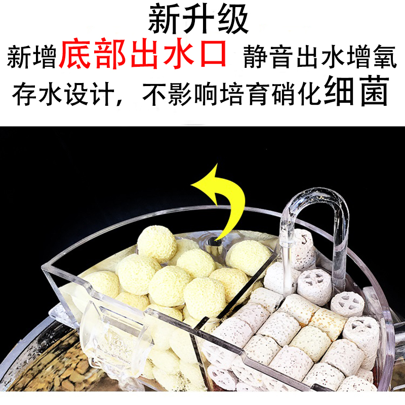 淘宝圆形玻璃鱼缸过滤器增氧三合一小型过滤盒陶瓷缸滴流盒瀑布静音净
