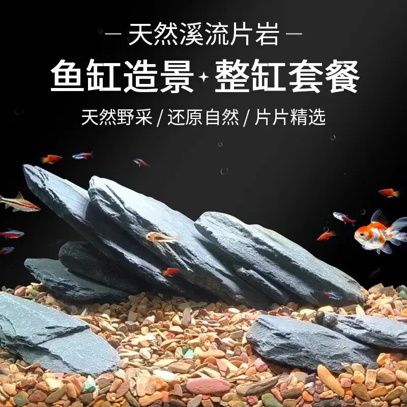天猫鱼缸造景片石天然片石薄片溪流缸原生溪流石大块乌龟晒台石头原石