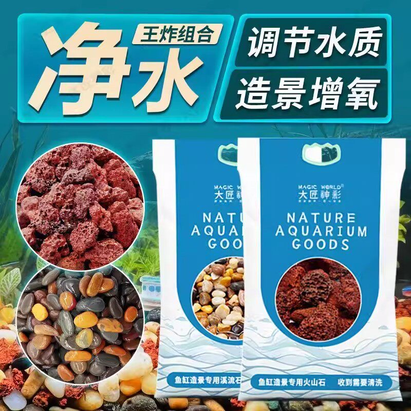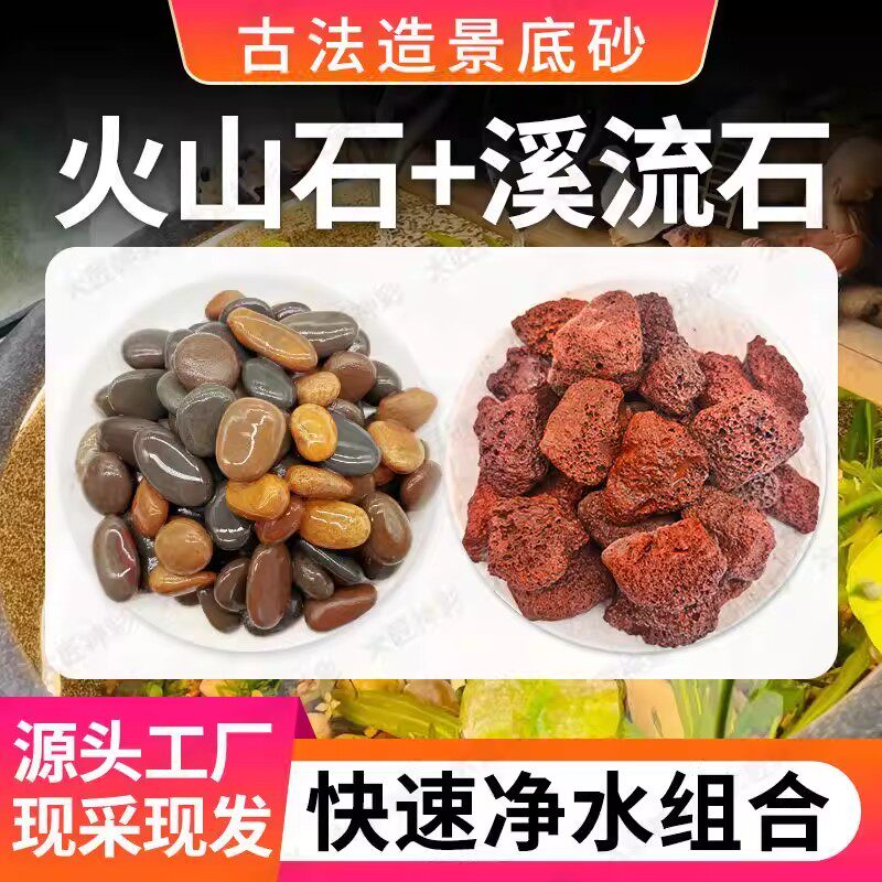 天猫天然火山石溪流石鱼缸造景套餐底部砂石古法养鱼专用装饰铺底颗粒