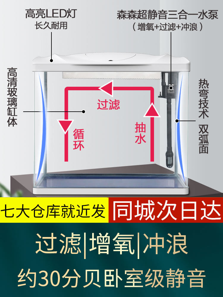 淘宝森森鱼缸水族箱生态桌面创意金鱼缸玻璃迷你小型客厅免换水家用缸