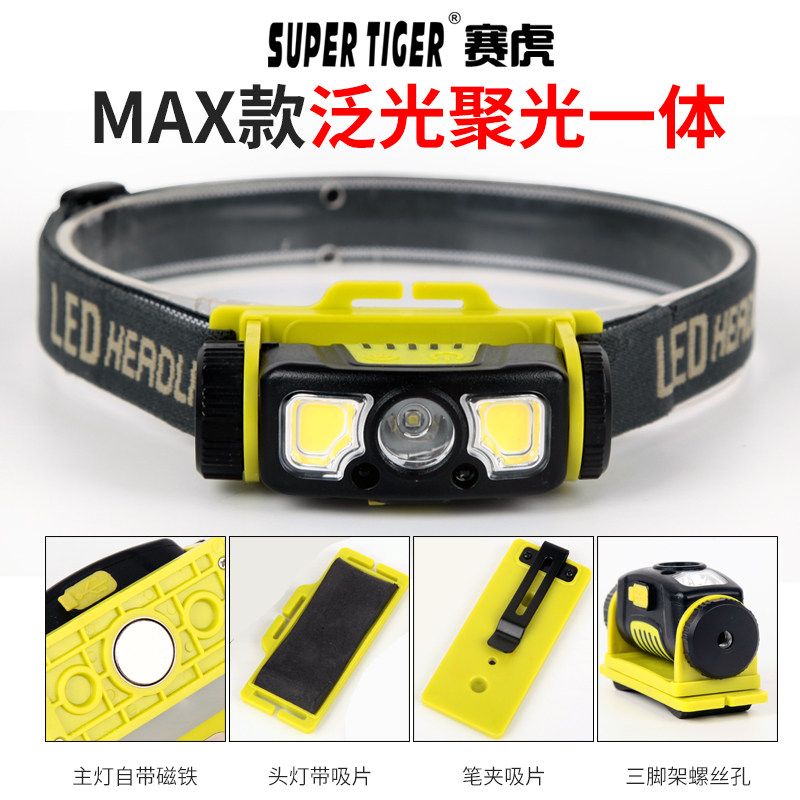 淘宝赛虎泛光感应强光超亮充电夜钓钓鱼头灯头戴式露营户外头顶手电筒