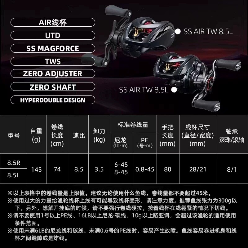 DAIWA达亿瓦2023年推出的SSAIR微物水滴轮,专为淡海水路亚钓设计,兼顾轻量化与高强度。采用航空级铝合金主体,重量仅185克,搭配精密CNC切割线杯,实现精准抛投与顺滑出线。搭载MAGSEAL磁力刹车系统,有效防止炸线,提升微物饵操控性。6.3:1高速比齿轮组,收线迅速,应对鲈鱼、鳜鱼及近海小型鱼种游刃有余。防腐蚀处理适应海水环境,搭配进口轴承确保顺滑耐用。SSAIR融合DAIWA尖端科技与实战需求,是微物路亚爱好者追求精准、轻便与可靠性能的优选装备。