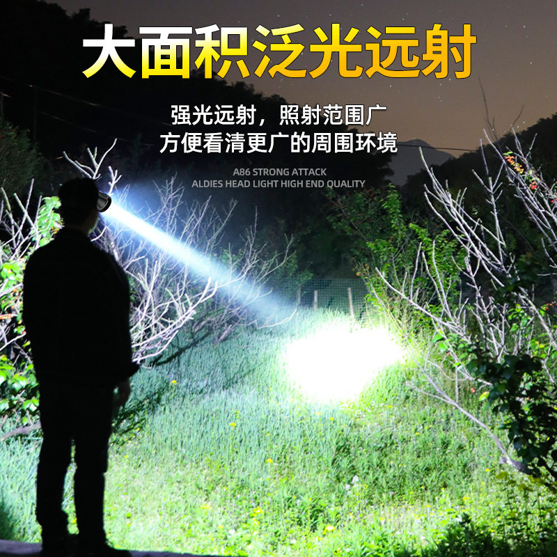 天夜钓头戴式头灯2025新款强光超亮超长续航100小时钓鱼专用手电筒