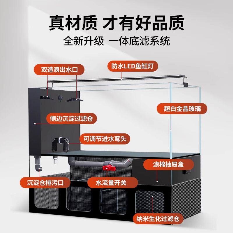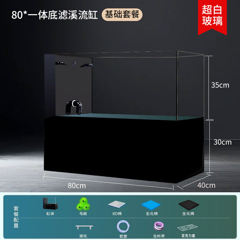 淘宝超白玻璃底滤溪流缸客厅家用中小型桌面生态缸金鱼缸水族箱新款