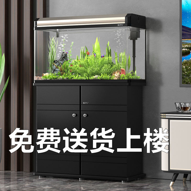 天猫免费上楼博宇金鱼缸超白玻璃家用客厅大型仿生态过滤一体水族箱新