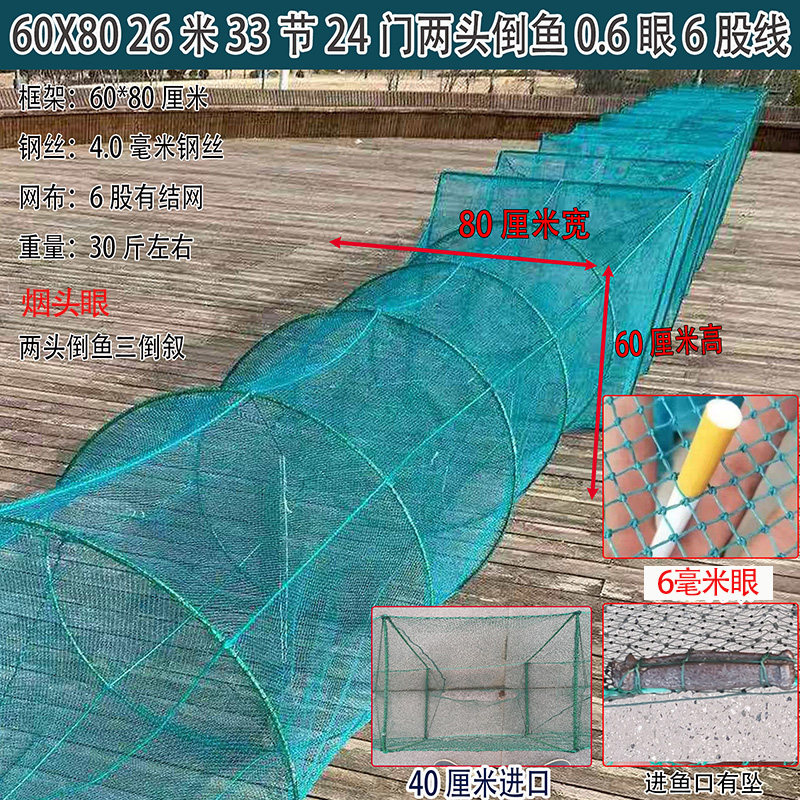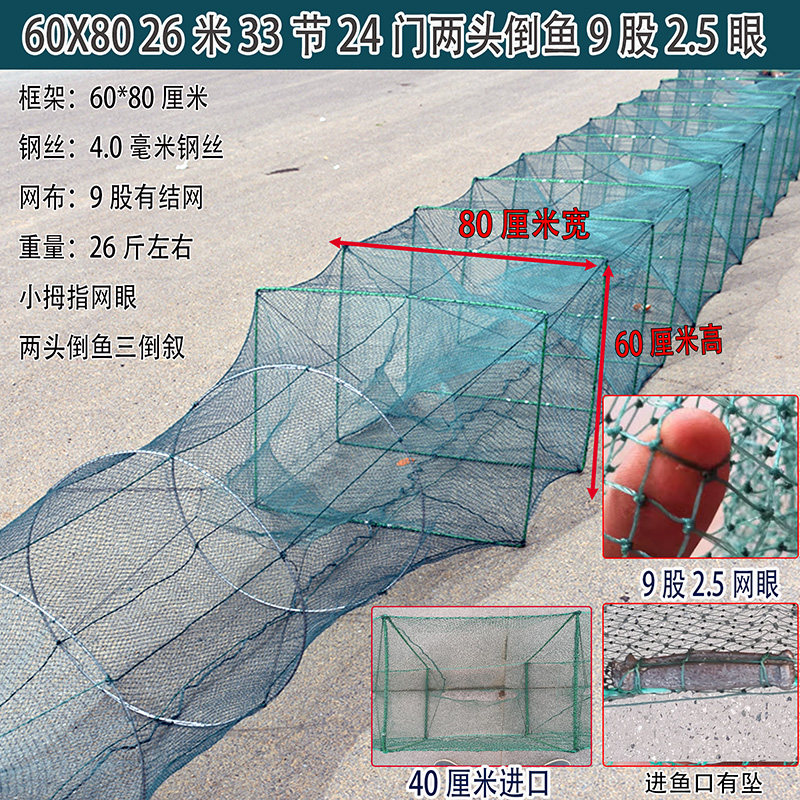 特大号加厚捕鱼笼是一款专为高效捕捞设计的便携式渔具,采用高强度加粗钢丝骨架与优质耐磨尼龙网布,结构稳固、抗撕裂性强,适用于江河、湖泊、池塘等多种水域。笼体设计科学,多入口漏斗结构有效引导鱼虾进入且难以逃脱,特别适合捕捉河虾、鲫鱼、黄颡鱼等中小型水生生物。折叠式设计便于携带与收纳,展开后空间大、容量足,提升捕捞效率。加厚网眼兼顾透水性与耐用性,减少水流冲击,延长使用寿命。无论是休闲垂钓还是专业捕捞,这款鱼笼都是实用可靠的理想选择。