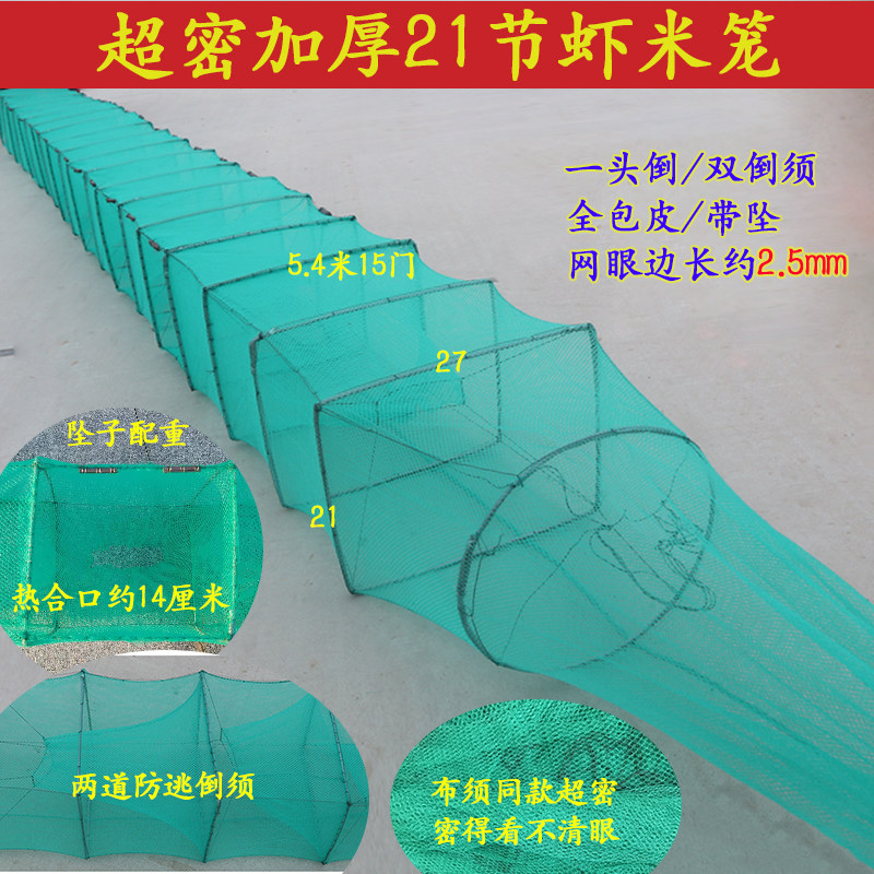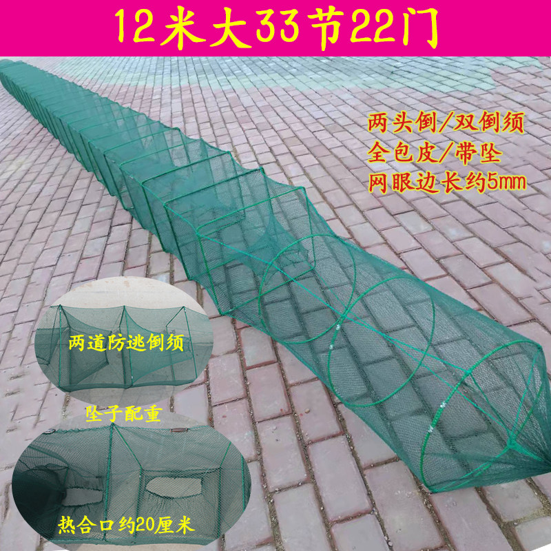 这款加厚地笼鱼网是专为捕捉黄鳝、泥鳅、河虾、龙虾等水生生物设计的捕鱼神器。采用高强度耐磨材料制作,网眼细密、结构牢固,有效防止逃脱,真正实现“只进不出”。笼体设计科学,入口倒须结构巧妙,诱鱼进入后难以脱身,大幅提升捕捞效率。适用于河流、池塘、稻田等多种水域,操作简单,可重复使用,环保耐用。无论是专业捕捞还是休闲垂钓,都是理想选择。加厚设计更增强了抗拉扯和抗腐蚀能力,延长使用寿命,是渔民和户外爱好者的实用工具。