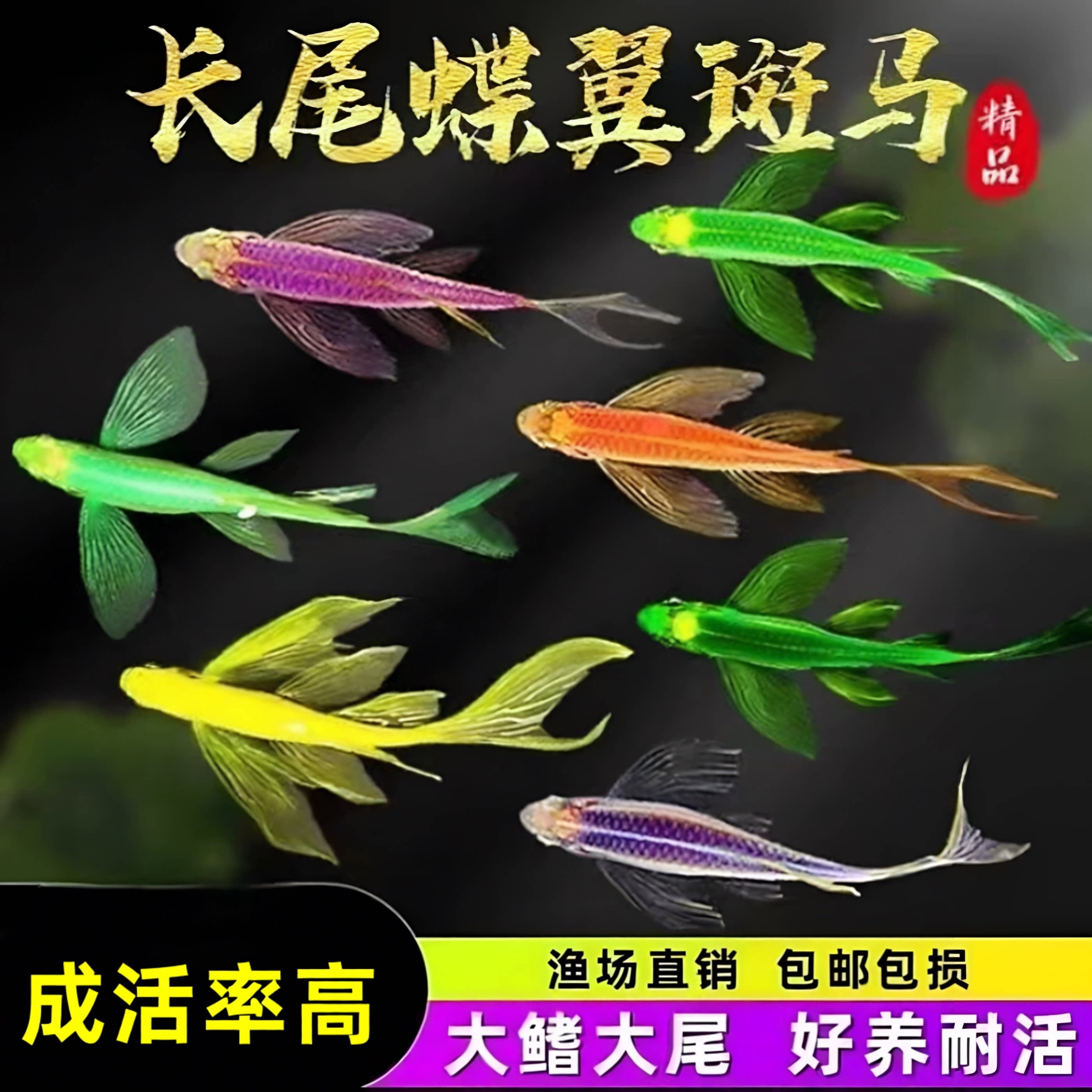 淘蝶翼斑马鱼长尾长鳍翡翠绿观赏鱼龙凤冷水小型淡水好养耐活小活鱼
