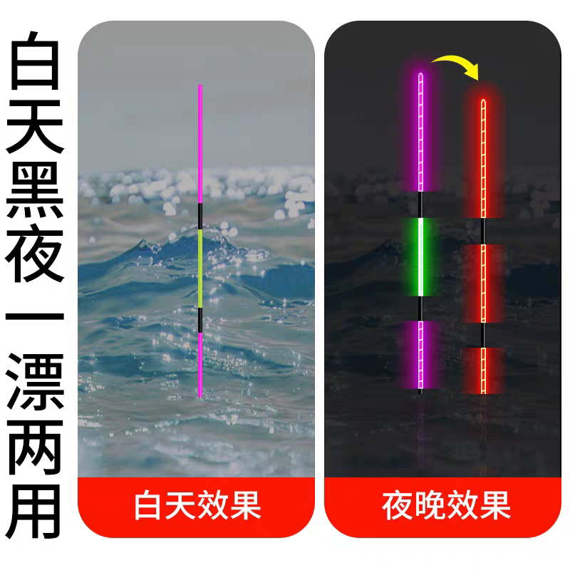 淘轻口小碎目一体夜光漂咬钩变色日夜两用电子漂高灵敏鲫鱼滑口浮漂