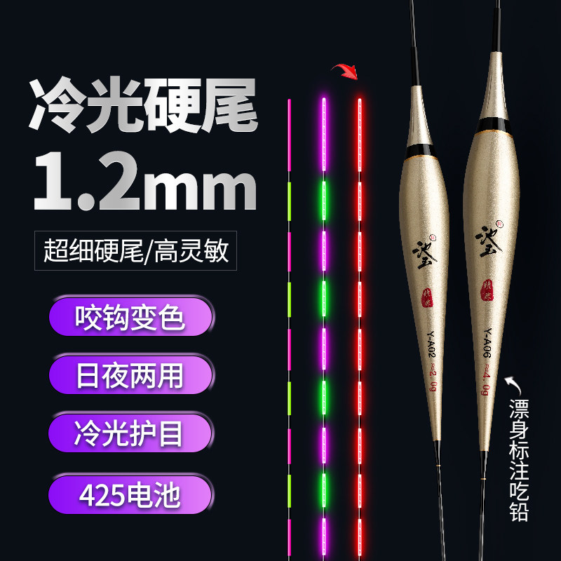淘宝超细冷光硬尾一体夜光漂咬钩变色电子漂日夜两用高灵敏鲫鲤鱼浮漂