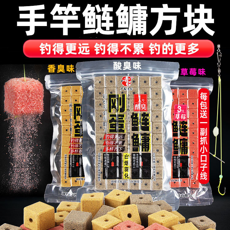 淘宝老G刚蛋鲢鳙饵料手杆方块大头鱼花白鲢鱼饵草莓味酸臭野钓巨物饵
