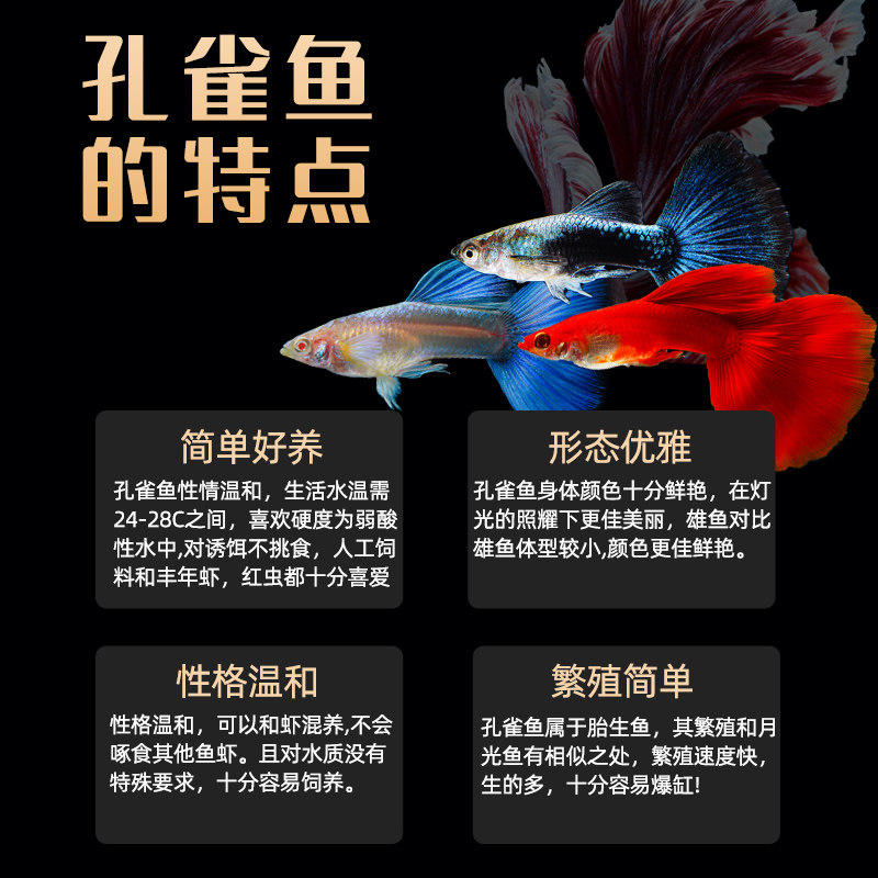 淘活体观赏鱼鸿运当头纯种孔雀鱼胎生鱼凤尾鱼淡水新手鱼直接生小鱼