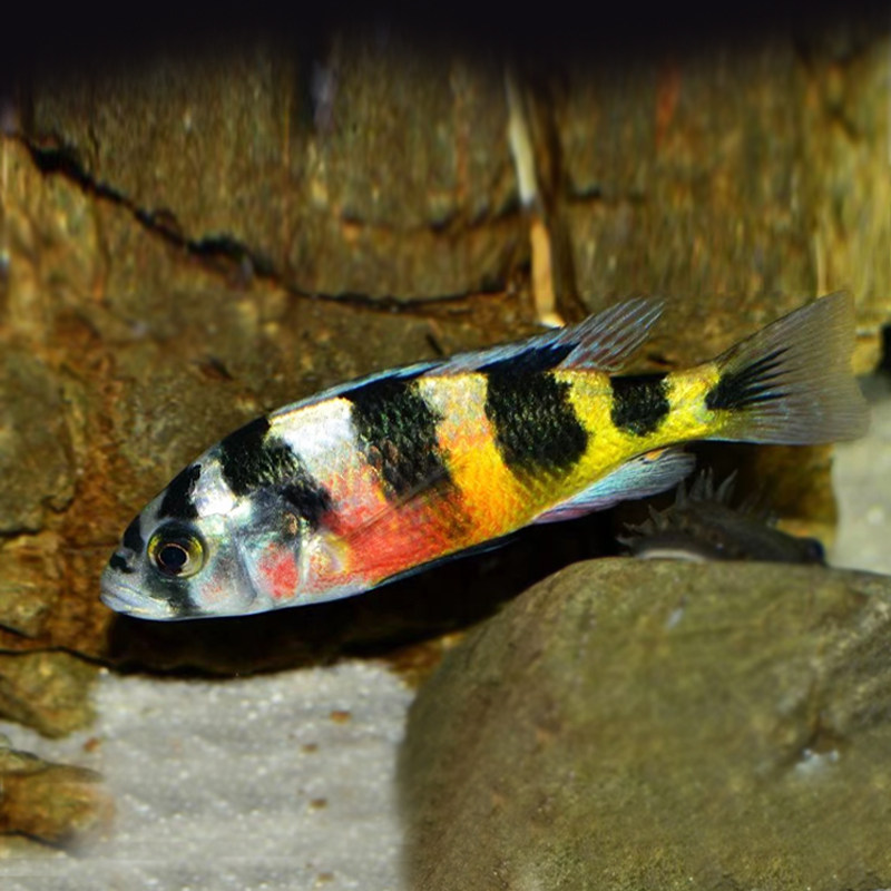 三湖慈鲷鱼中的斑马天使(又称黑线王子)是一种中小型热带淡水观赏鱼,原产于非洲马拉维湖,以其鲜明的黑白相间横纹酷似斑马而得名。体型修长优雅,性格相对温和,适应力强,对水质要求适中,pH值7.5–8.5、水温24–28℃为宜,非常适合初学者饲养。斑马天使耐养易活,食性杂,可接受人工饲料、冷冻红虫等。在良好环境下体色鲜艳,群养效果更佳。作为三湖慈鲷中较温顺的品种,适合与同类型中小型慈鲷混养,是水族箱中极具观赏价值的经典鱼种,深受爱好者喜爱。