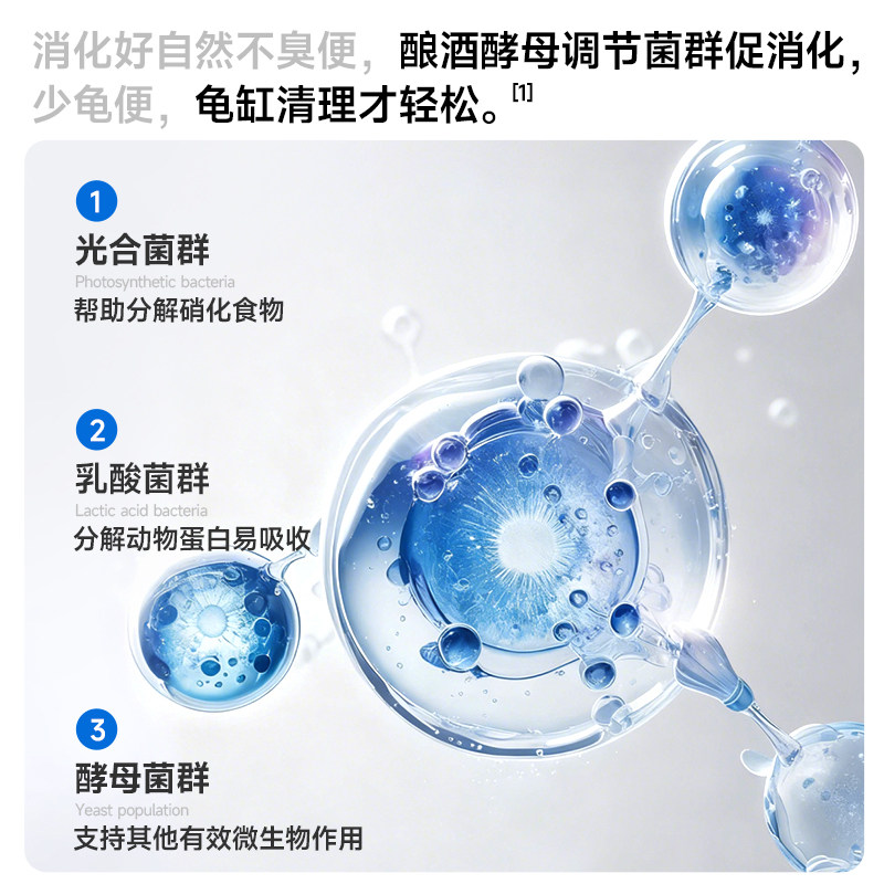 Yee乌龟饲料善玉菌龟粮,专为水龟、巴西龟、石金钱龟、黄缘闭壳龟及剃刀龟等设计,富含优质蛋白与天然发色成分,有效促进龟壳色泽亮丽、增强活力。特别添加善玉菌(益生菌),改善肠道健康,提升消化吸收率,减少排泄物异味,维护水质清洁。科学配比维生素与矿物质,支持骨骼发育与免疫系统。颗粒适中,适口性强,沉水性好,避免浮料浪费。长期使用有助于提升龟只整体健康状态,尤其对发色阶段个体效果显著,是专业养龟人士的优选饲料。