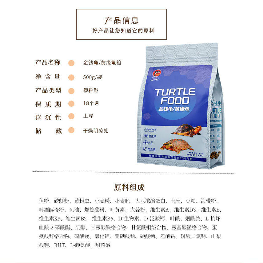 淘海皇乌龟饲料龟粮鳄龟饲料石金钱龟饲料乌龟粮食巴西龟料幼龟粮