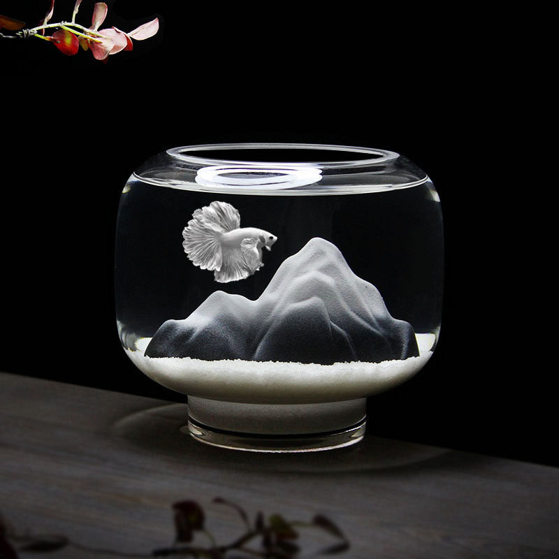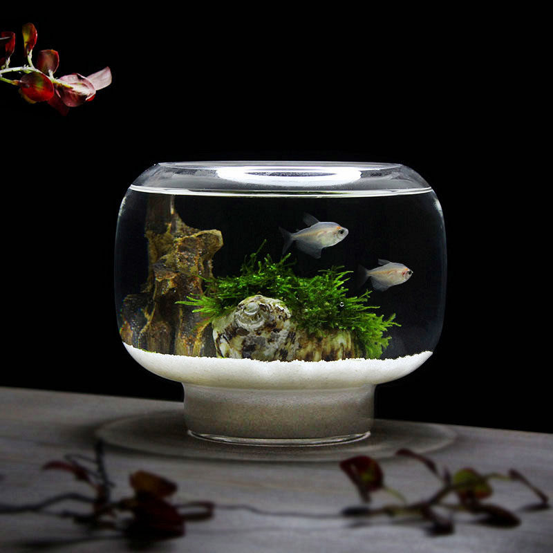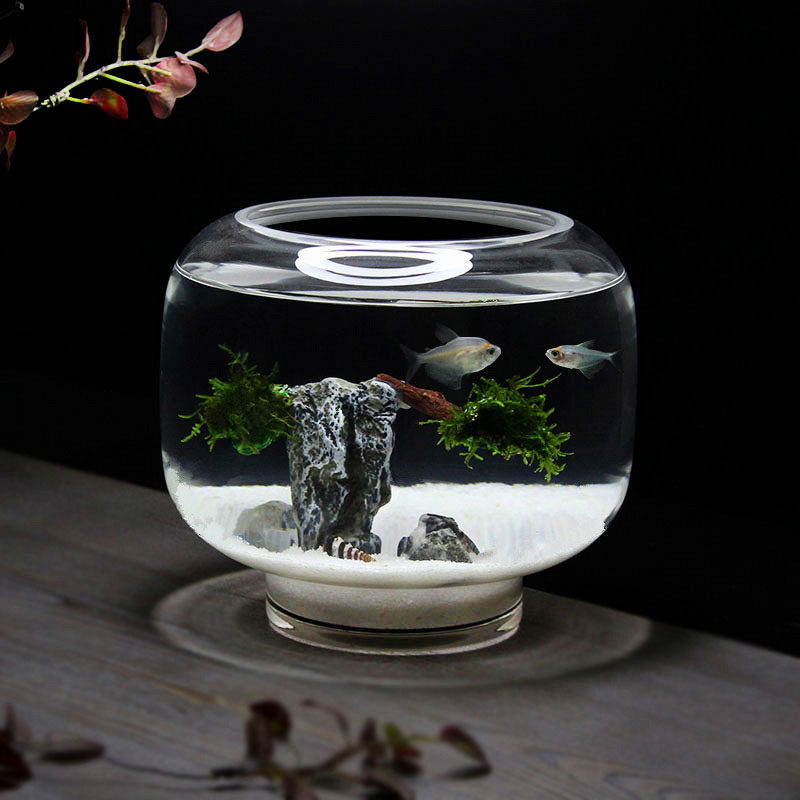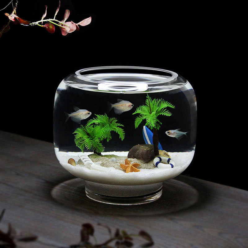 淘办公室小鱼缸加厚透明玻璃乌龟缸客厅家用桌面圆形迷你小型金鱼缸