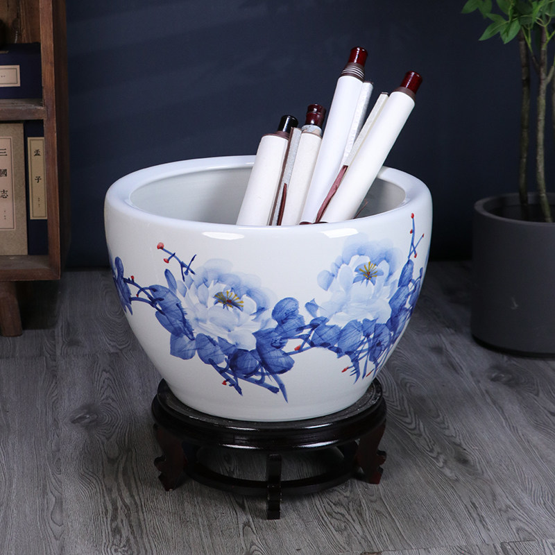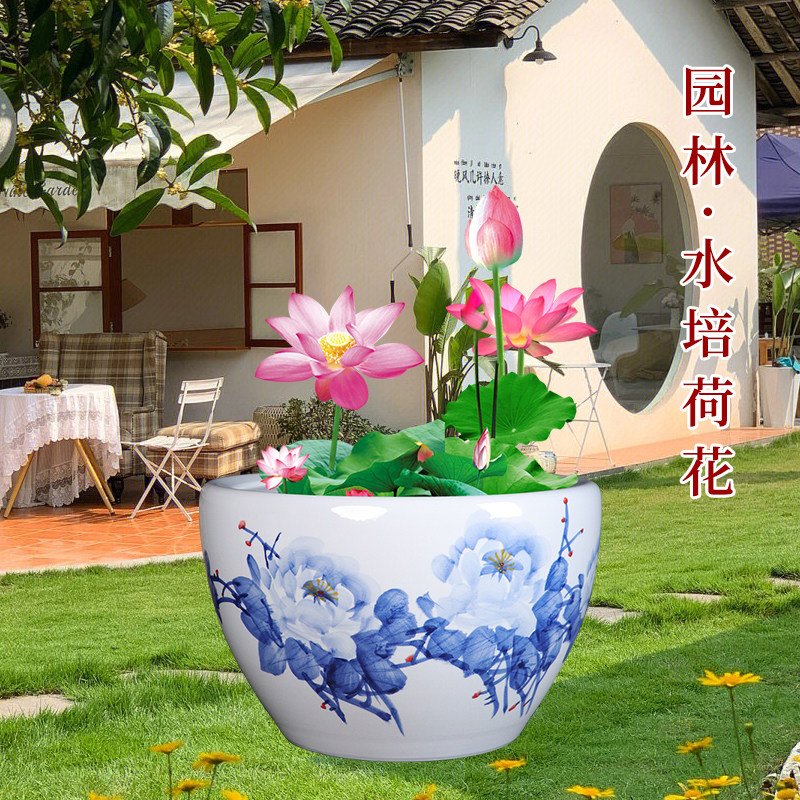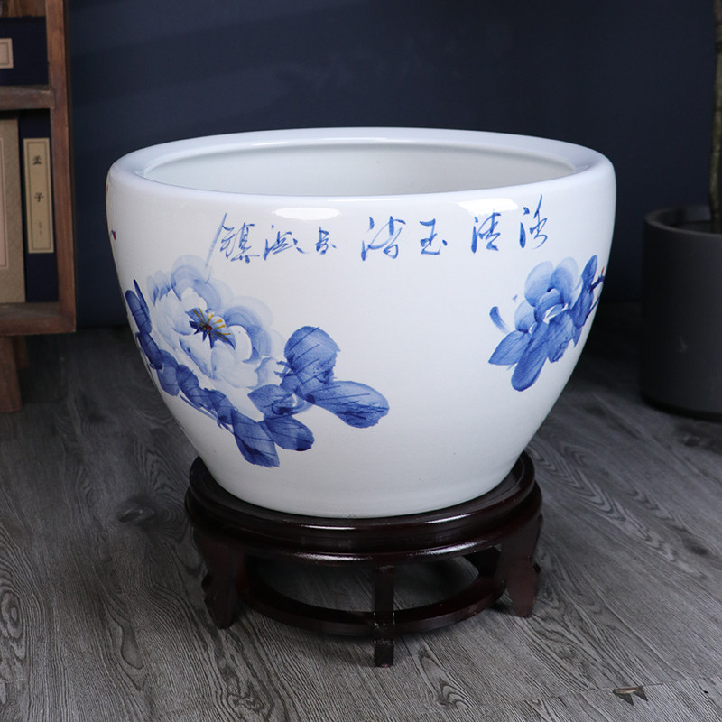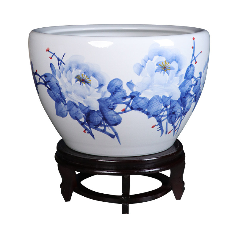 淘宝景德镇手绘青花瓷陶瓷金鱼缸客厅养乌龟睡莲盆荷花缸庭院室外水缸