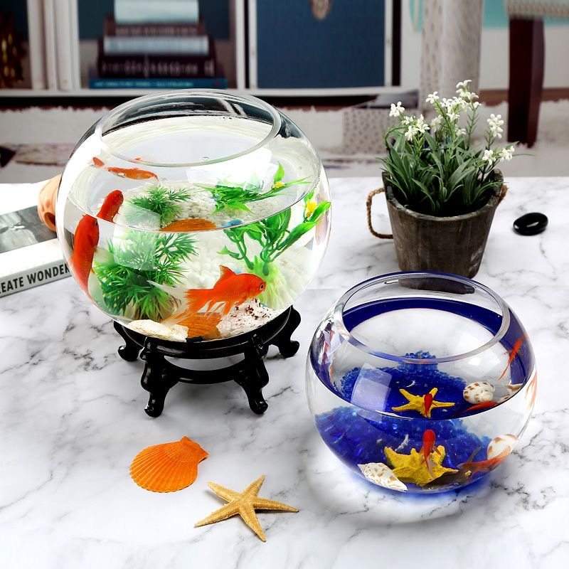 淘宝创意圆形玻璃鱼缸透明大号桌面加厚乌龟缸金鱼缸水培客厅风水招财