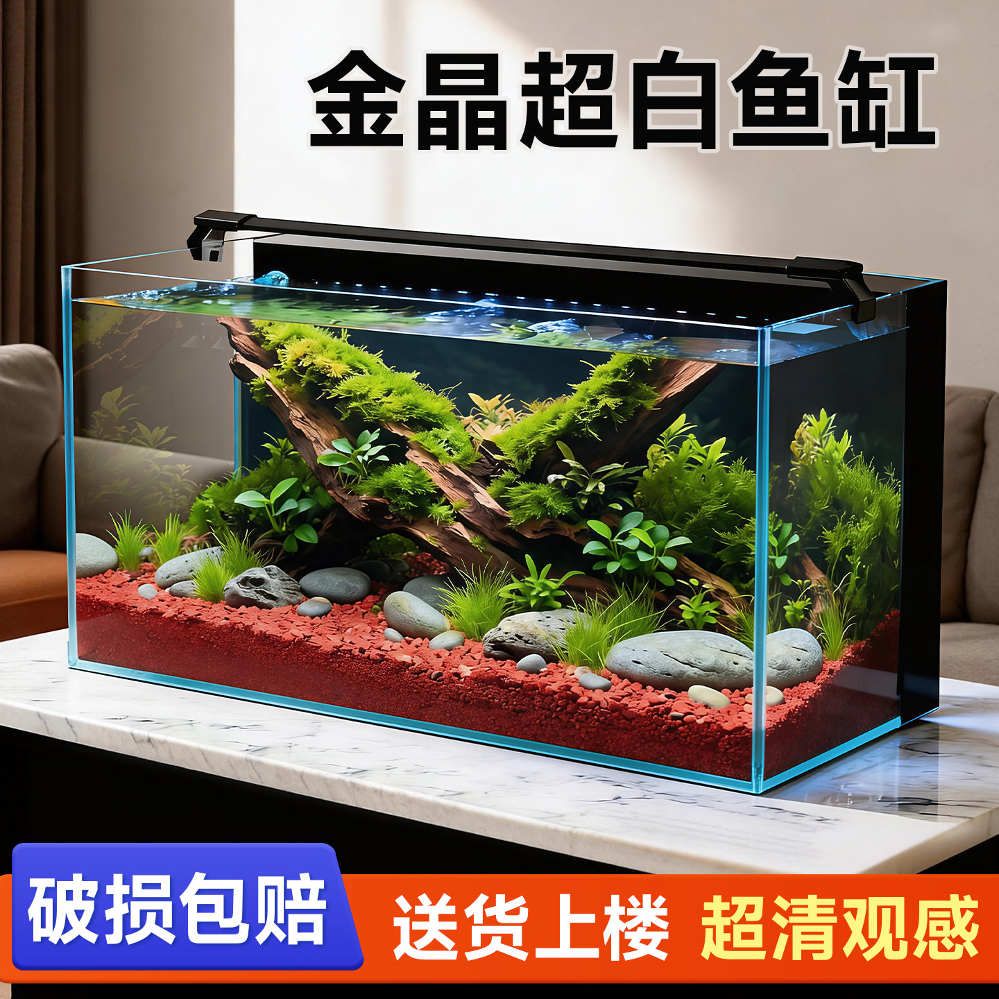 天鱼缸新款超白生态玻璃缸家用客厅办公室小型大桌面底部排水养金鱼