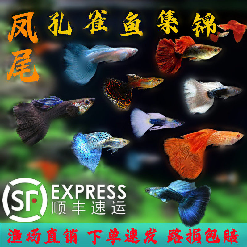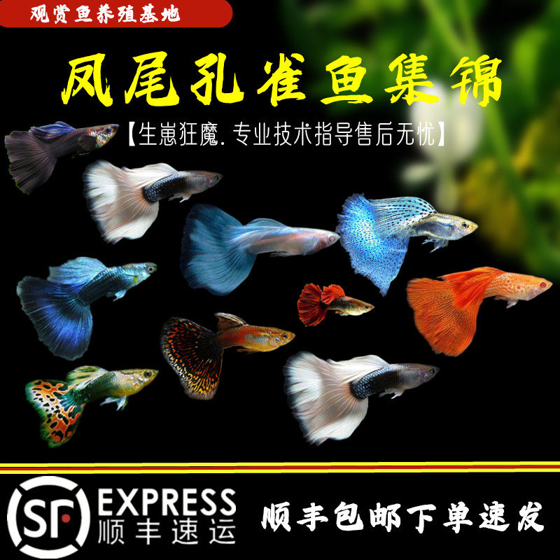 淘宝纯种孔雀凤尾鱼热带观赏鱼小型淡水鱼胎生鱼集锦好养易活包损包邮