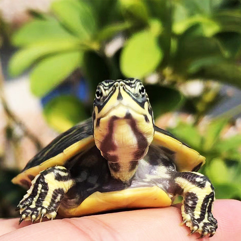 火焰龟宽纹红腹苗“禄仔”是一种极具观赏价值的淡水龟,因其腹甲呈鲜艳红色、背甲具火焰状宽纹而得名。幼体活泼好动,适应力强,适合深水环境饲养,也可与性情温和的龟类混养。该品种食性杂,喜食蔬菜、龟粮及少量动物性饵料,有“吃菜龟”之称,环保又省心。民间认为其红腹象征吉祥招财,寓意“禄仔进宅,福运自来”。作为活体观赏龟,它不仅生命力旺盛,还能有效清理水族箱中的残渣,被称为“吃粪龟”,兼具实用与观赏性,是家庭水族或庭院造景的理想选择。