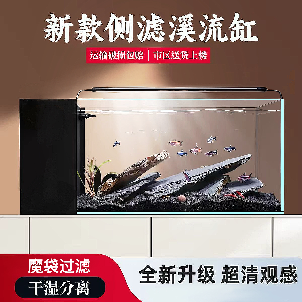 淘宝生态鱼缸客厅小型超白侧滤玻璃一体式新款免换水溪流桌面底滤造景