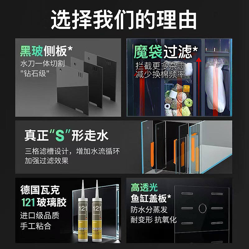 淘嘉赤侧过滤制氧一体式机自循环家用客厅桌面溪流超白玻璃懒人鱼缸